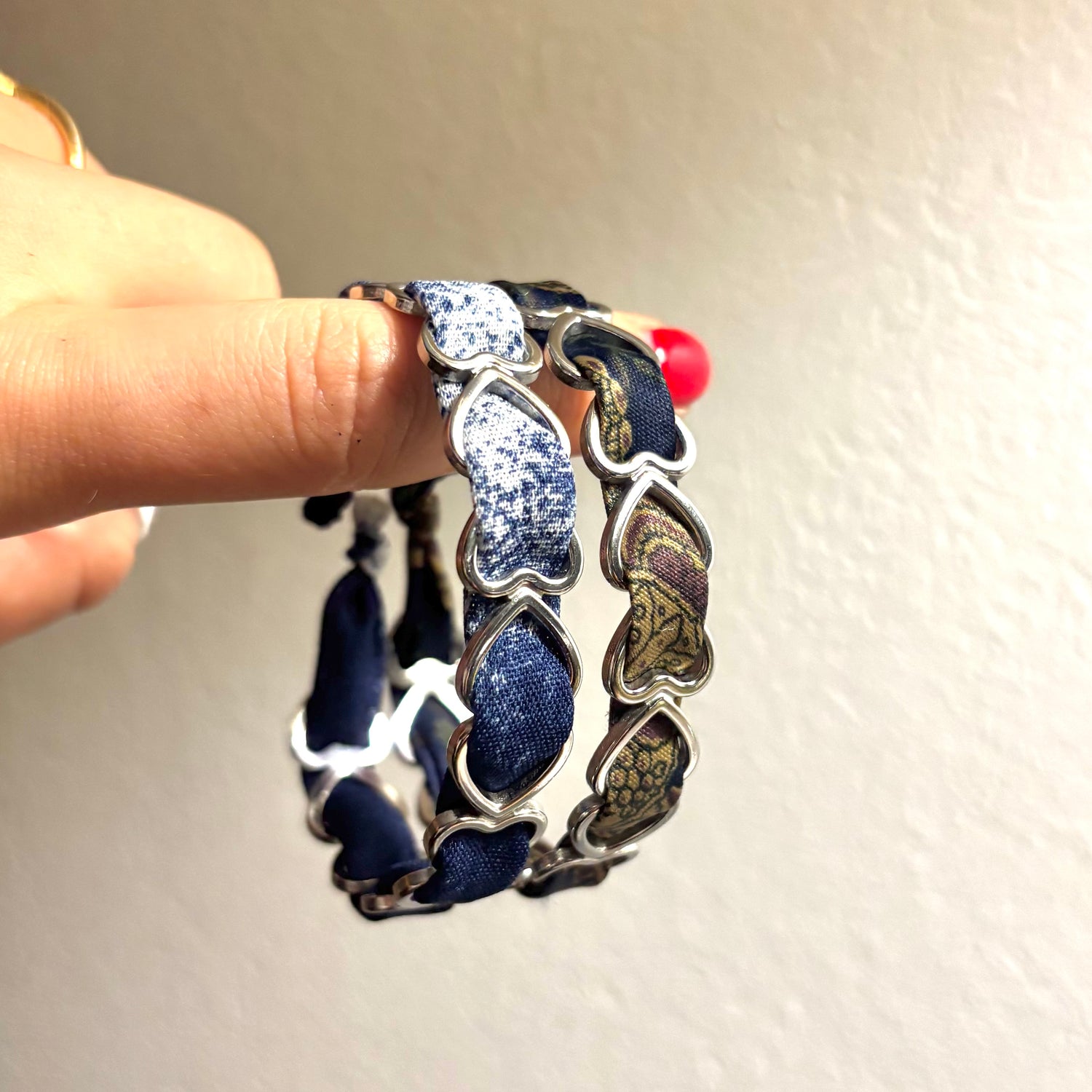 Nous proposons des bijoux créés à partir de votre tissu qui vous tient à coeur, et ces tissus sont travaillés à la main.